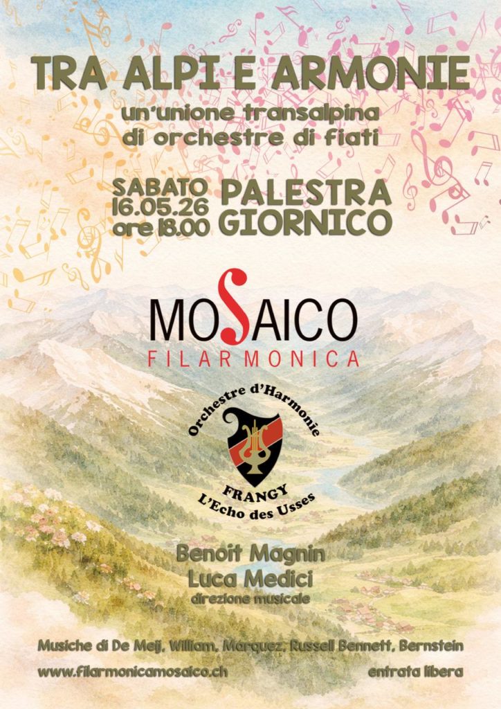 Sul palco di Giornico si riuniranno quasi ottanta musicisti: una trentina dalla Svizzera italiana, una cinquantina dalla Haute-Savoie. Due ensemble radicati in paesaggi alpini, guidati rispettivamente dal Maestro Luca Medici e dal Maestro Benoît Magnin, con un programma eclettico che spazia dalla musica classica al repertorio contemporaneo per fiati e percussioni.